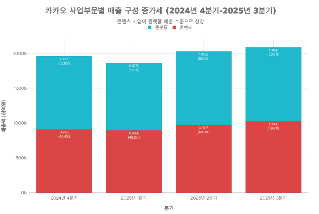 카카오는 2024년 이후 플랫폼 부문의 견고한 성장과 콘텐츠 부문의 회복을 바탕으로 본격적인 실적 회복기에 진입했습니다. 특히 2025년 분기별 결과는 단순한 규모 확대를 넘어 수익성 구조 개선이 현실화되고 있음을 명확히 보여줍니다.