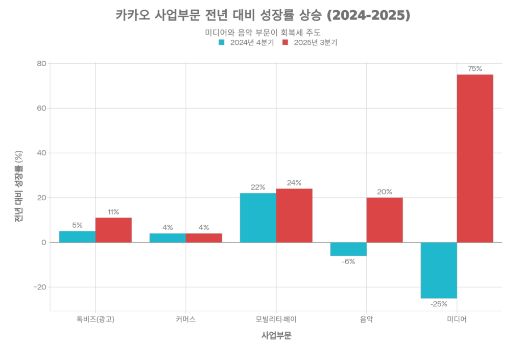 카카오의 콘텐츠 부문은 2024년 한 해를 어렵게 보냈으나, 2025년 중반 이후 뚜렷한 회복을 보였습니다.