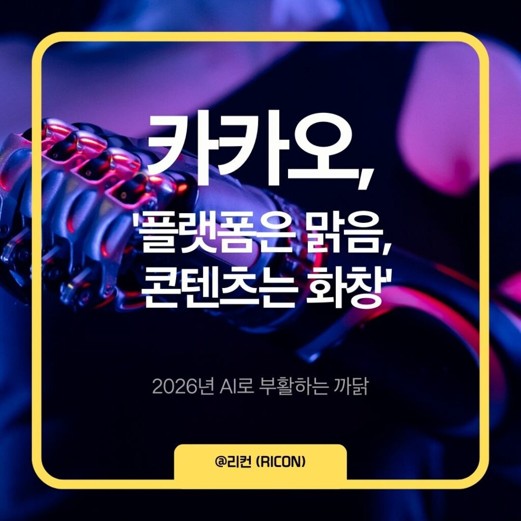 카카오는 “안정적 플랫폼 + 콘텐츠 회복 + AI 선택권” 이라는 삼중 성장 구조를 갖춘 기업입니다. 2026년의 핵심은: