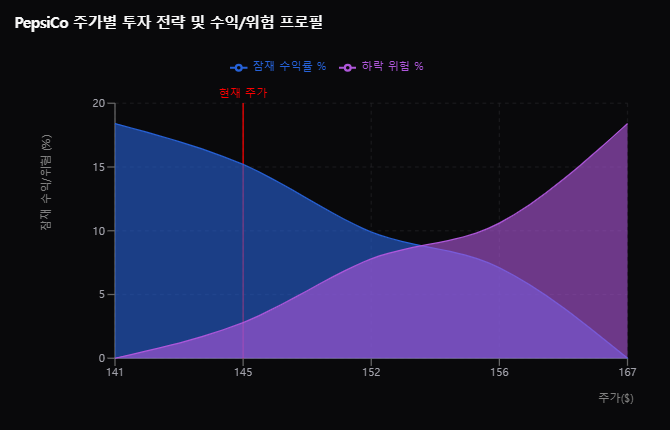 현재 가격은 PepsiCo 주식에 대한 긍정적인 매수 포인트이며, 특히 중장기 투자자들에게는 분할매수 대응이 가능한 영역이라 할수 있습니다.